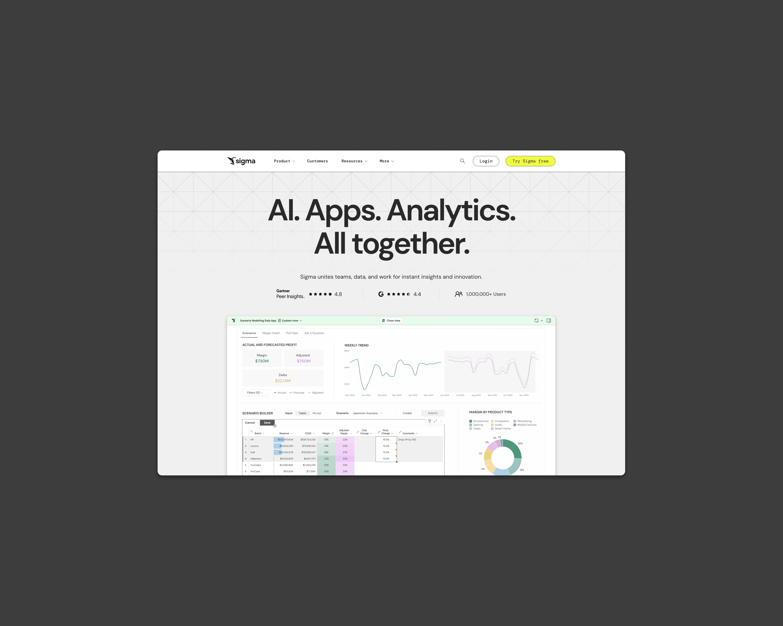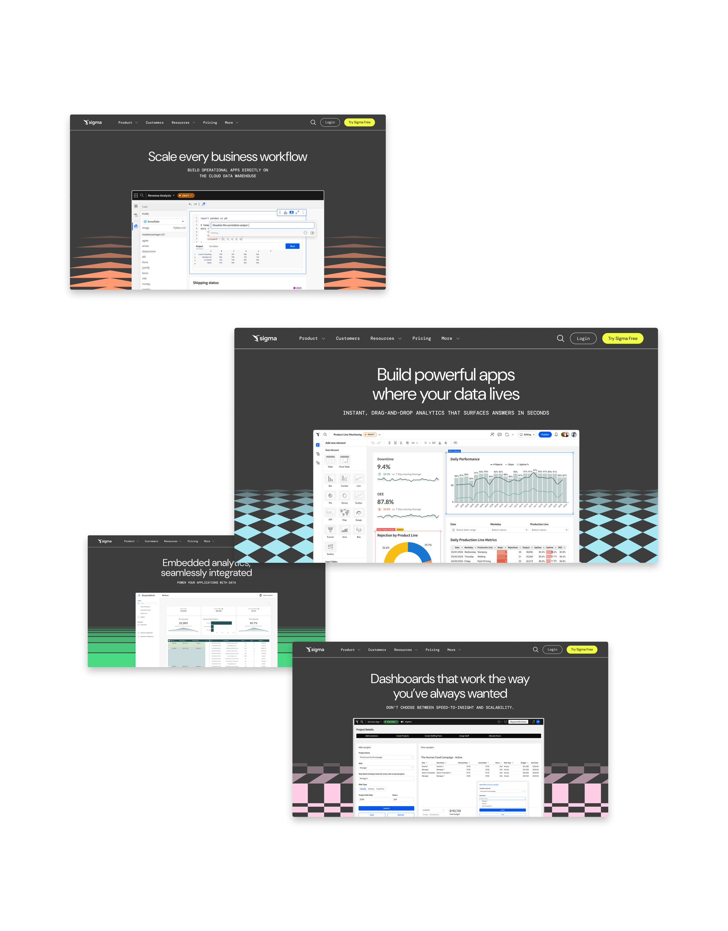 A kinetic energy burst in the business intelligence space. Sigma translates complex analytics into a clean, engaging interface — emphasizing accessibility, speed, and collaboration at scale.